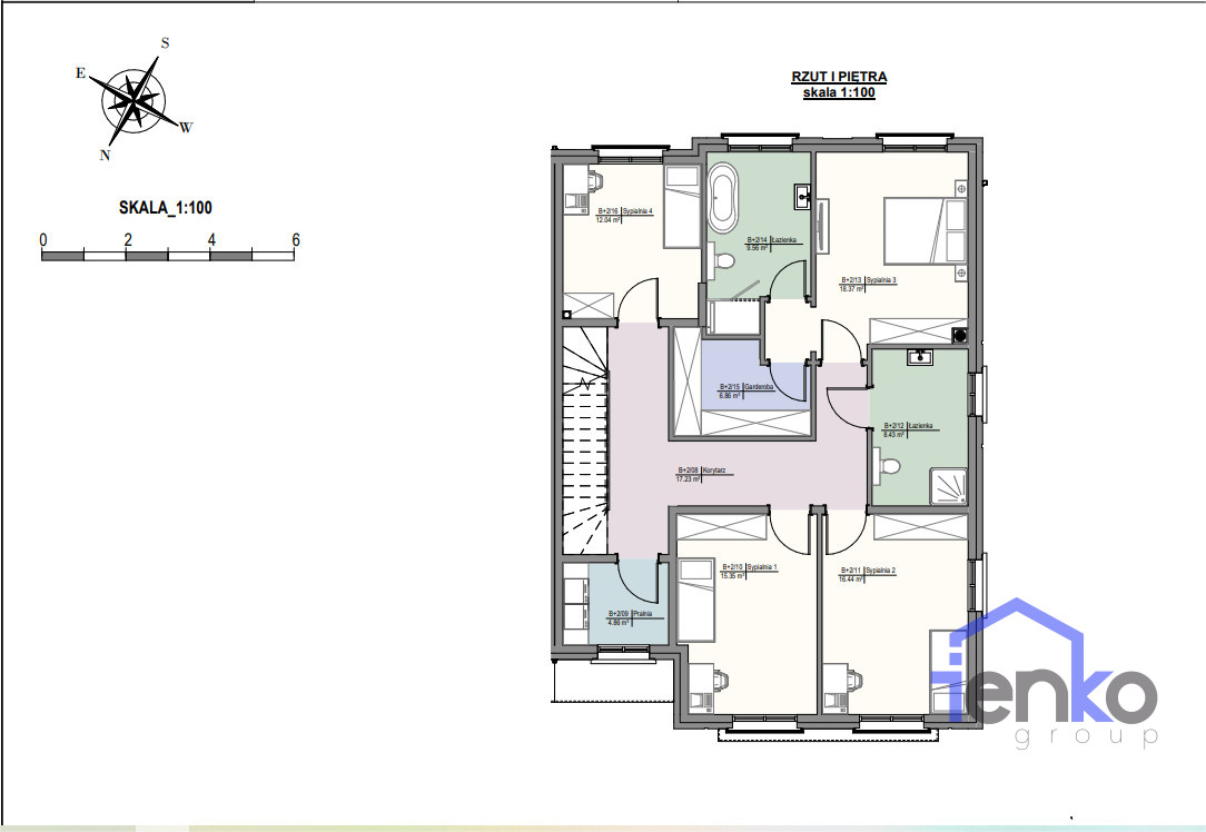 • Piętro: 4 sypialnie (w tym master z łazienką i garderobą), dwie łazienki, pralnia, garderoba
