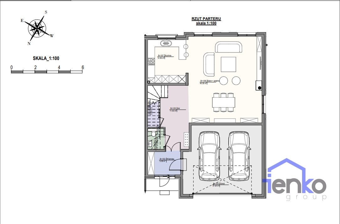 • Parter: salon, jadalnia, kuchnia, spiżarnia, kotłownia, garaż