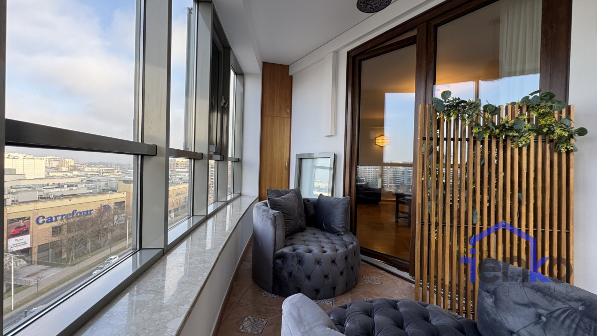 Powierzchnia apartamentu wynosi 120 m² (wraz z zamkniętą loggią).