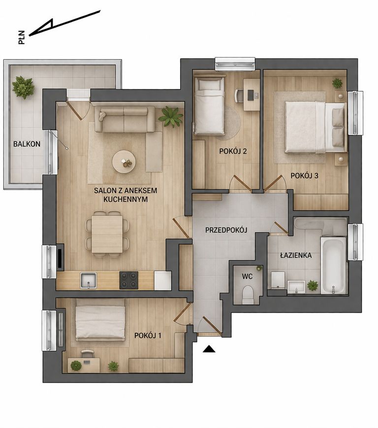 - Narożne mieszkanie z narożnym balkonem - wnętrze pełne naturalnego światła