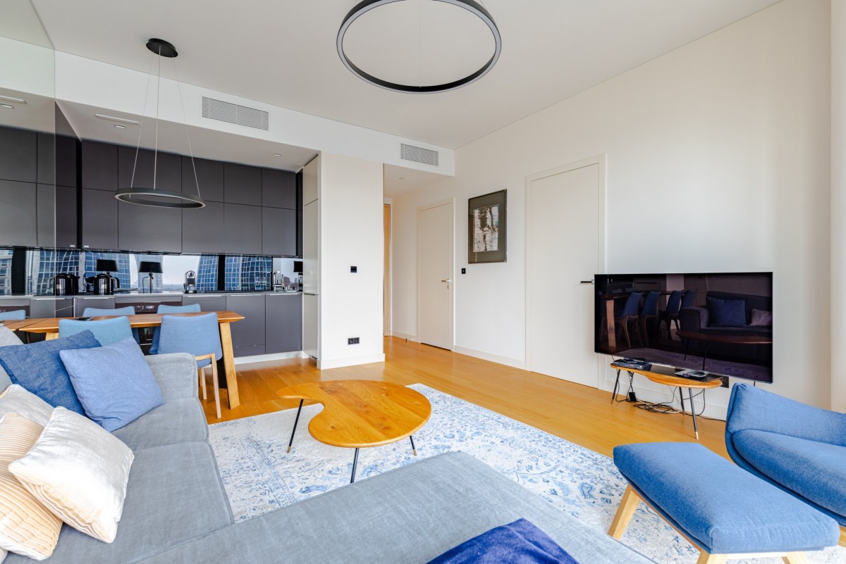 We offer for sale an exclusive 2-room apartment with an area of 53 m², located on the 21th floor of the prestigious Cosmopolitan building in the heart of Warsaw. The apartment offers a beautiful view of the city skyline.