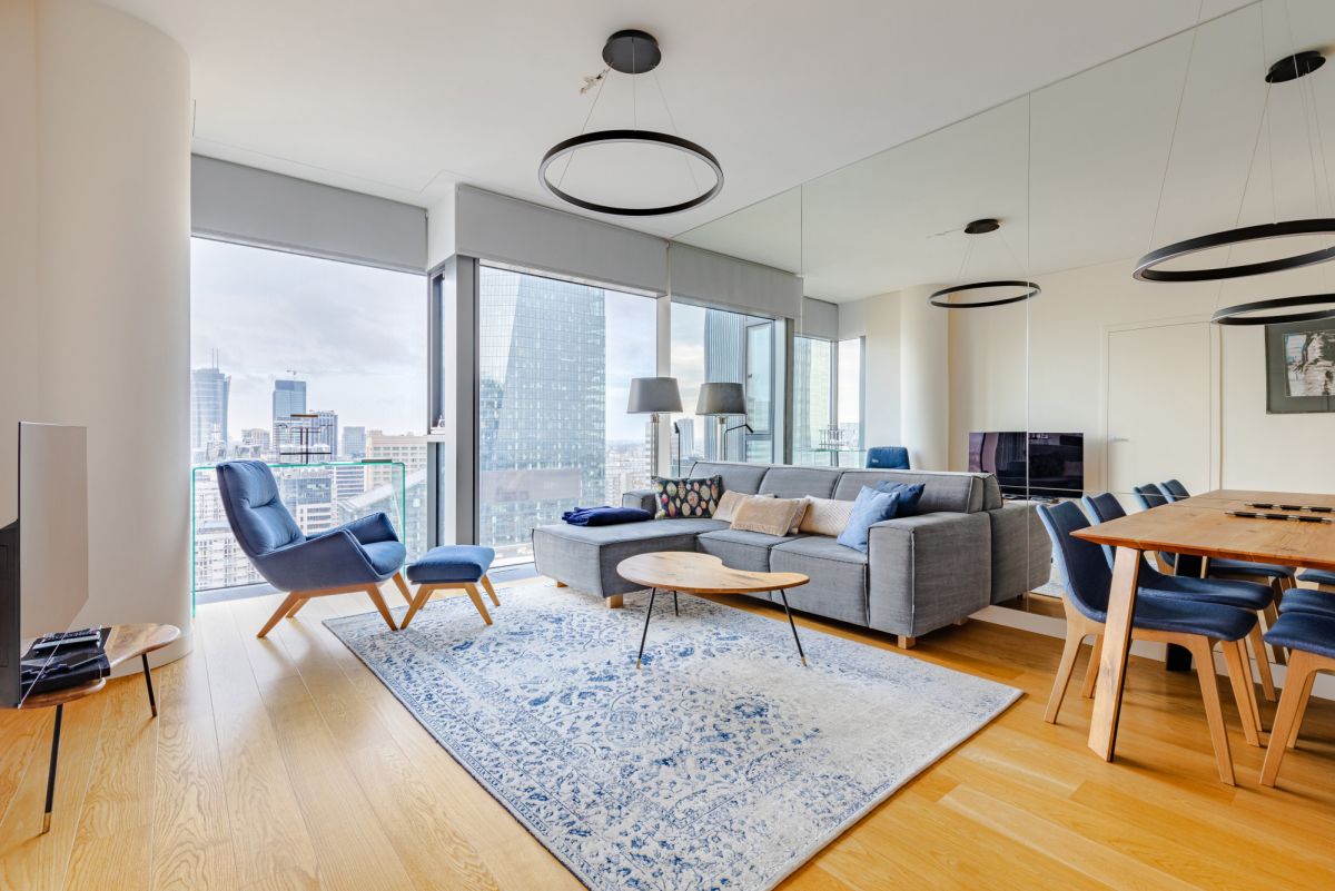 Oferujemy na wynajem ekskluzywny 2-pokojowy apartament o powierzchni 53 m², usytuowany na 21 piętrze prestiżowego budynku Cosmopolitan w samym sercu Warszawy. Z mieszkania rozpościera się piękny widok na panoramę miasta.
