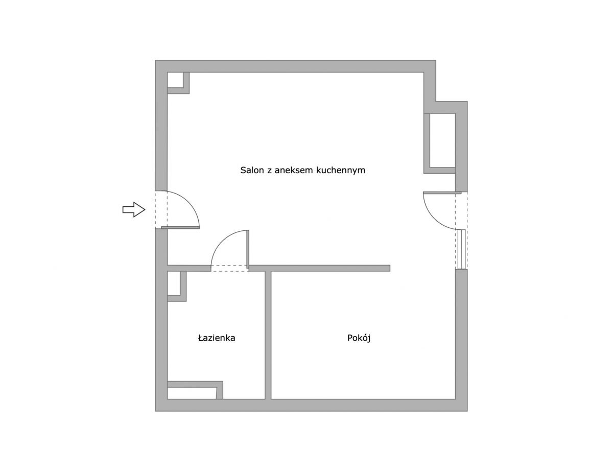 - przestronny salon z aneksem kuchennym oraz balkonem francuskim,
