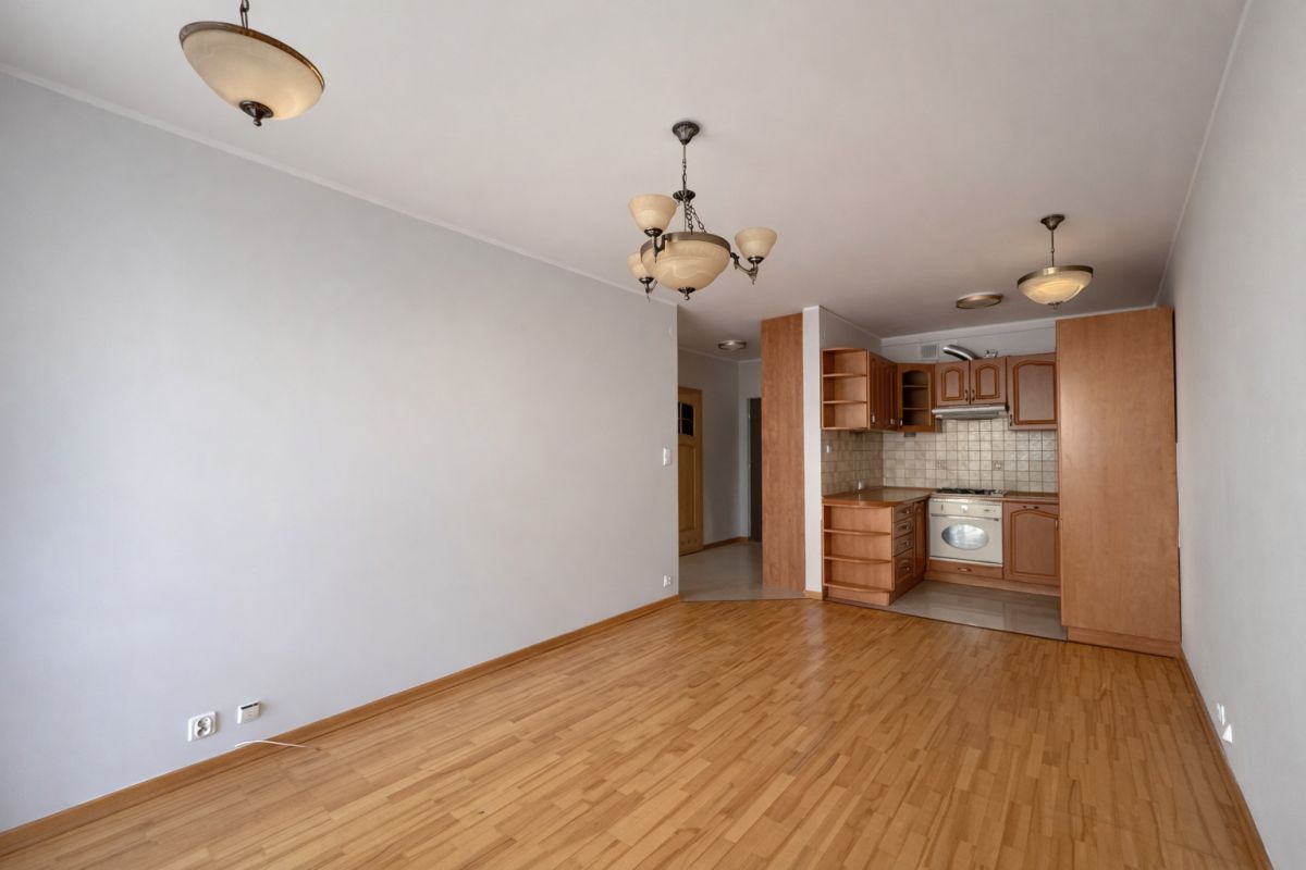 - Salonu z aneksem kuchennym i wyjściem na balkon,