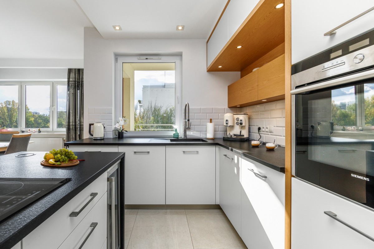Do wynajęcia komfortowe, wyposazone w dobrej jakosci meblie i sprszet AGD mieszkanie 3-pokojowe o pow. okolo 90 m2 położone na 3 piętrze w 10-piętrowym budynku apartamentowym z 2012 r. przy ul. Elsnera 34 na Mokotowie.