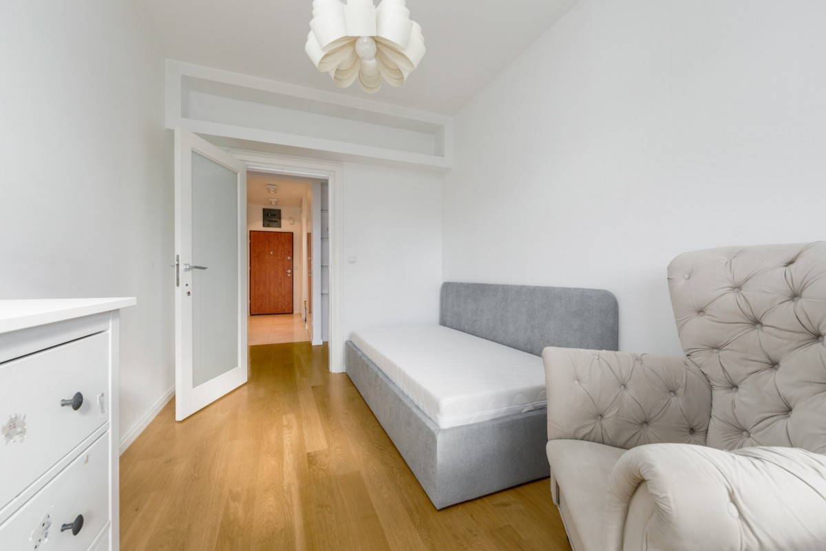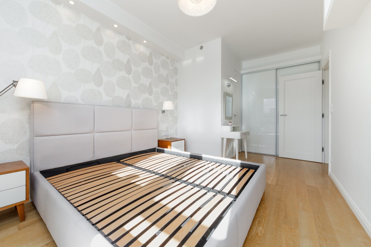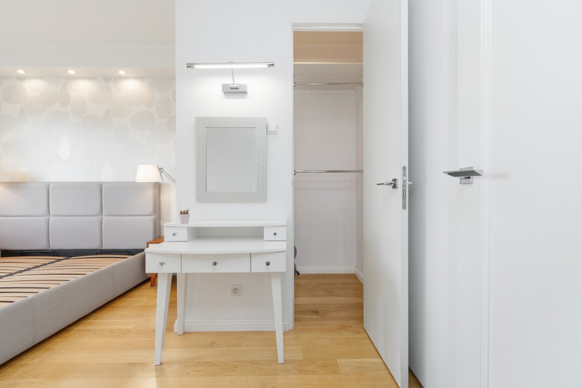 - sypialnia z wygodnym łożkiem, szafą w zabudowie i garderobą