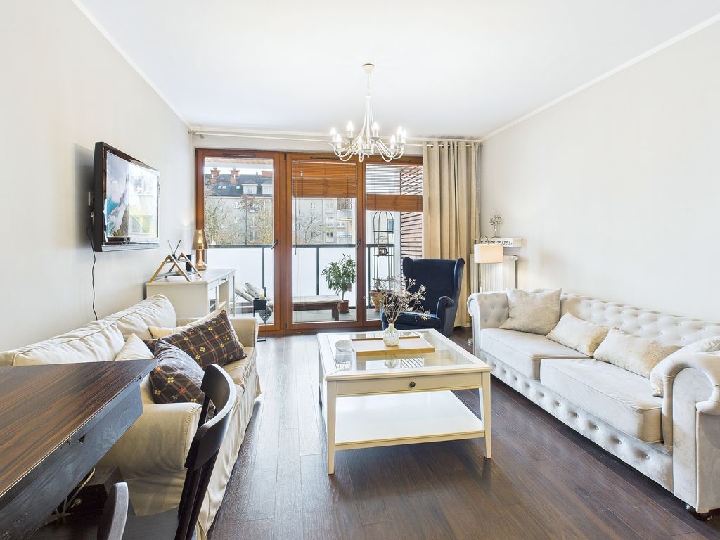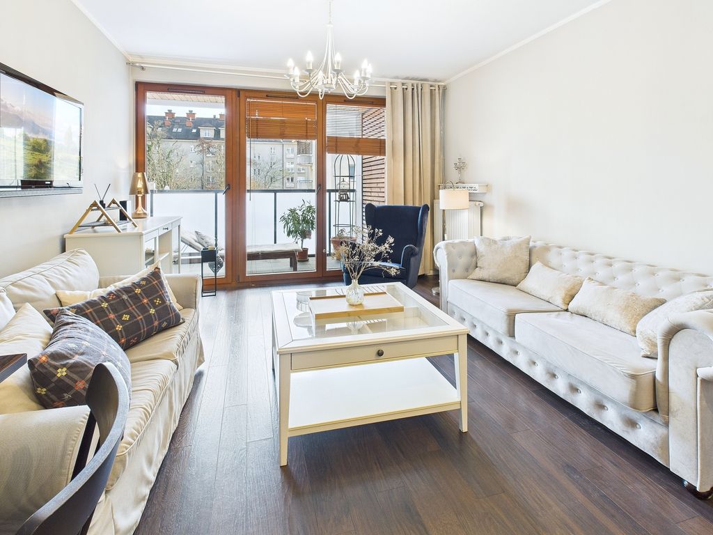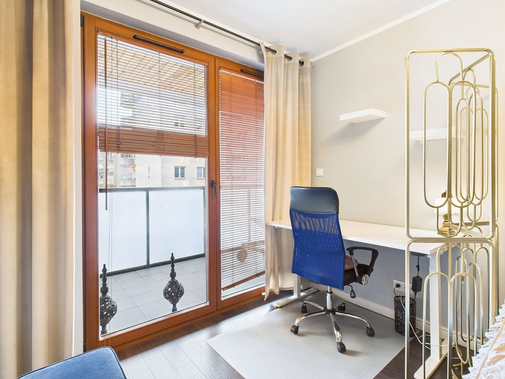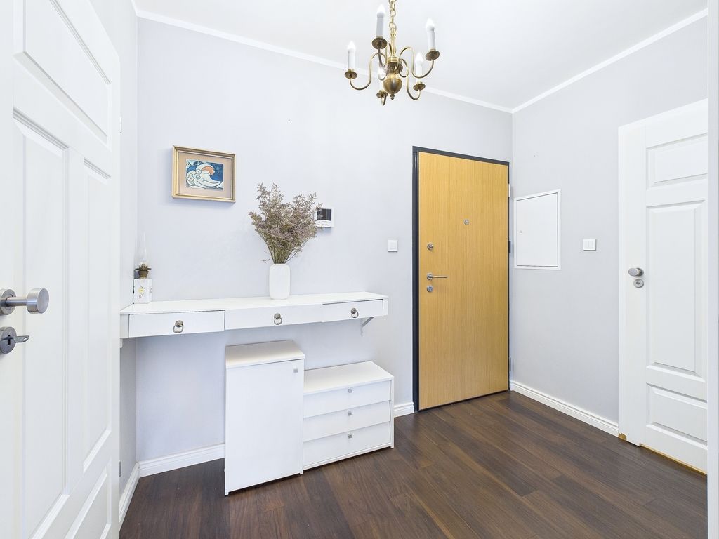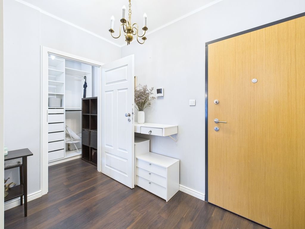 For rent, a sunny, fully furnished 57.20 m² apartment is located on the first floor of a modern building with an elevator in Warsaw's Gocław district. This offer is aimed at discerning individuals seeking a move-in ready space that combines functionality with the warmth of home. The apartment boasts a well-thought-out layout and rare amenities, such as a separate dressing room and utility room, which definitively solve storage problems and improve the standard of everyday living.