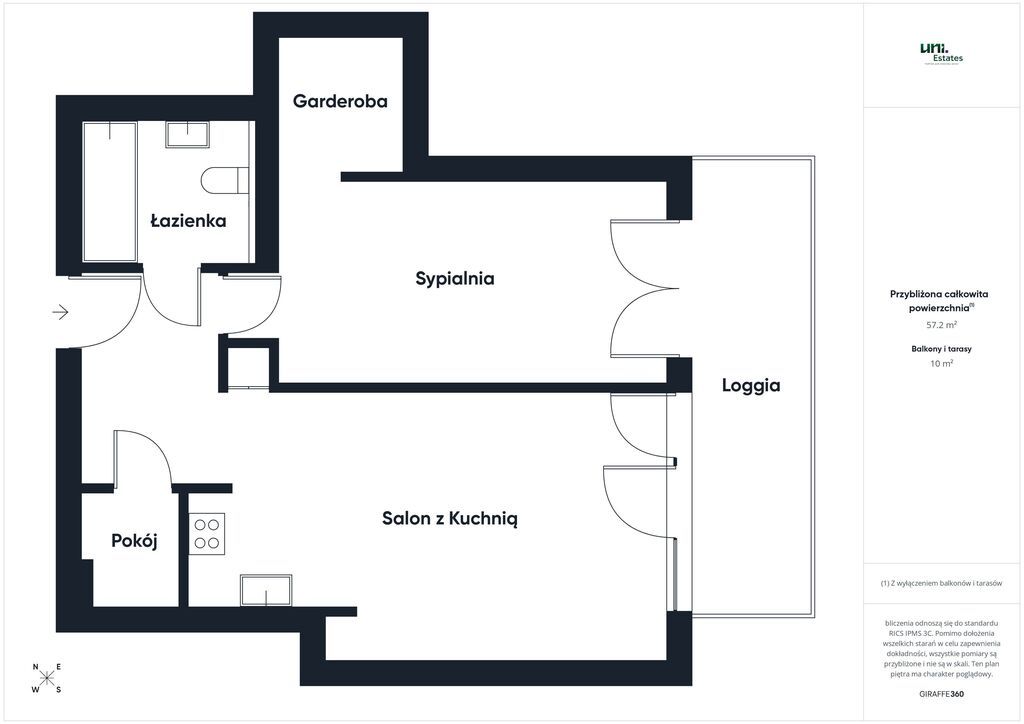 - Powierzchnia: 57,20 m²
