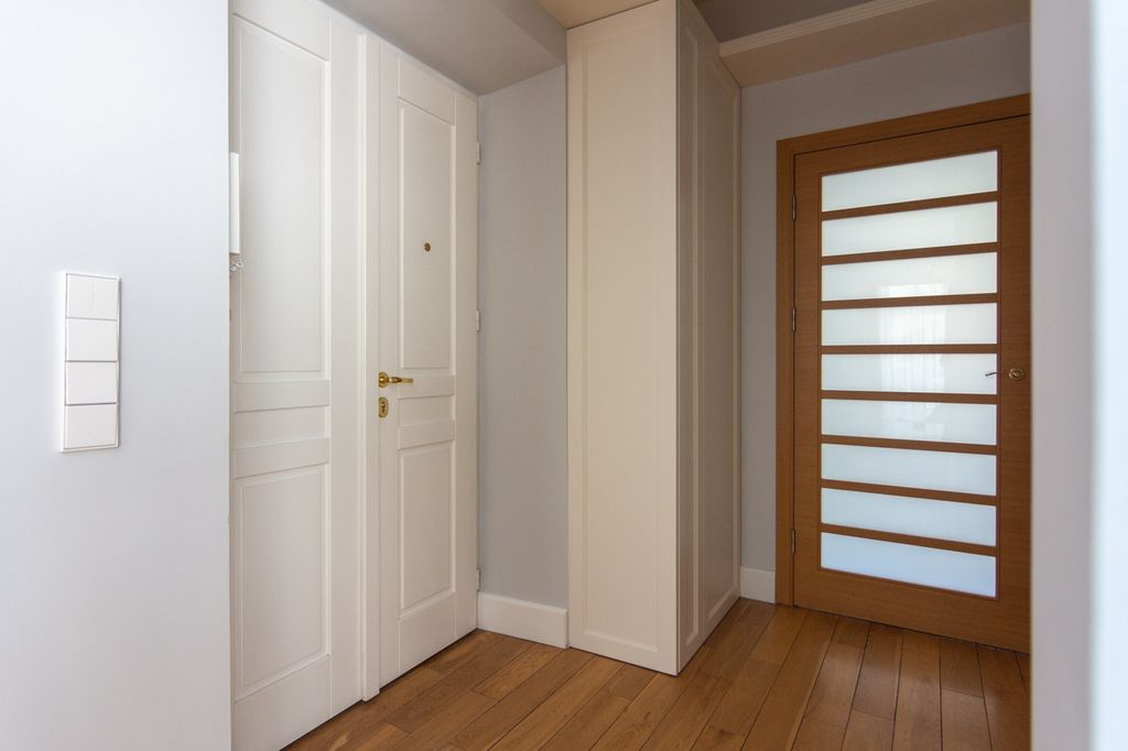 Wnętrze mieszkania zachowuje unikalny klimat Saskiej Kępy, łącząc styl przedwojennej kamienicy z nowoczesnym komfortem.
